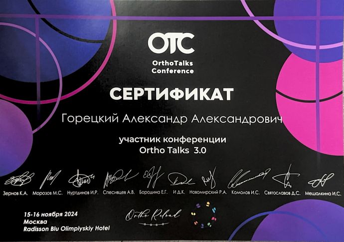 15-16.11.2024 Участник конференции Ortho Talks 3.0